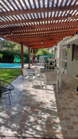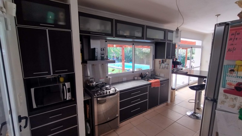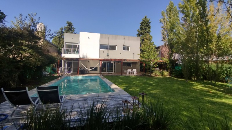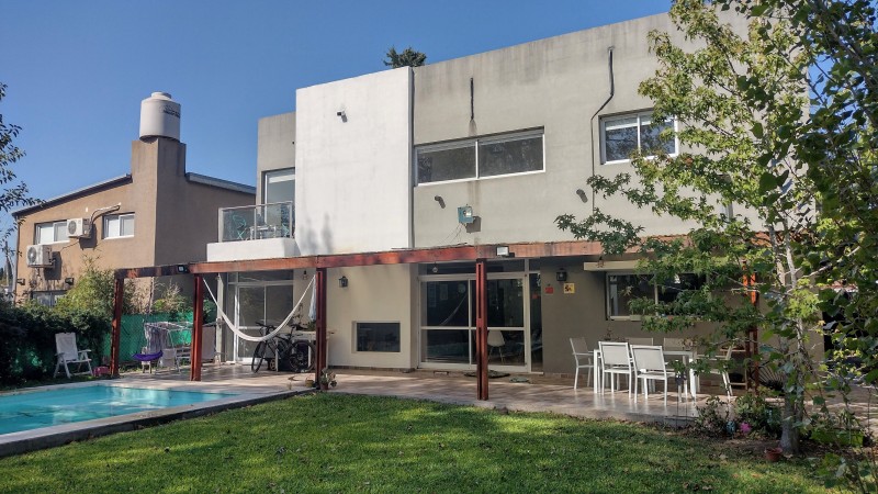 Hermosa casa en Villa Elisa, entre camino General Belgrano y Camino Centenario, rápidos accesos y egresos a la ciudad de Buenos Aires y La Ciudad de La Plata, excelente barrio residencial, edificada sobre dos terrenos, solida construcción, distribuida en dos plantas: en planta baja, amplio ambiente de concepto abierto, con cocina completa con alacena, bajo mesada y barra desayunadora, comedor diario, living, baño completo, garage semicubierto para dos vehiculos, galeria semicubierta, piscina de 9 metros de longitud por 4 metros de ancho, y jardin forrestado. En planta alta: baño completo, dormitorio principal con vestidor y balcón hacia el contrafrente, dos dormitorios muy comodos y luminosos, y cuarto (4to) dormitorio que se puede utilizar como escritorio, sala de estudio, etc. Acepta propiedad en parte de pago. NO PERMUTA. Coordinar visitas con antelación.-