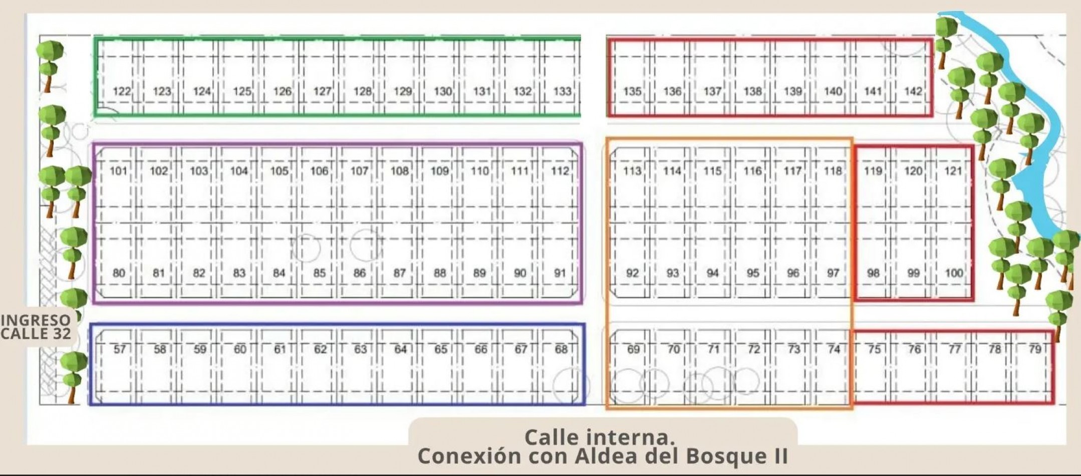 Estudio Lacerra Vende Terreno en la 2ºetapa de Aldea del bosque II. Comprende 85 lotes de 420 m² c/u. Se encuentra ubicado a metros de la Ruta 36 (calle 191 y 32), a 25 minutos de La Plata y a 20 minutos de City Bell. Es el lote numero 76 con 15 metros de frente por 28 metros de fondo, con una superficie de 420 mts2. Escritura de parte indivisa. Coordinar visitas con antelación.-